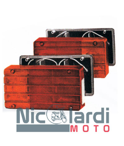 Coppia fanali posteriori completi di guarnizioni, uno con e l’altro senza finestra luce targa, 3 funzioni (posizione, direzione e stop).