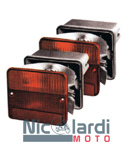Coppia fanali posteriori completi originali, 3 funzioni (posizione, direzione e stop). Carcassa in ABS colore grigio. Fissaggio con 2 bulloni.